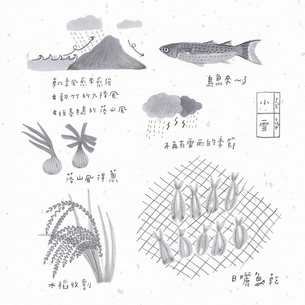 不同時節的水果蔬菜、花季、侯鳥、隨著水溫遊走的魚群們